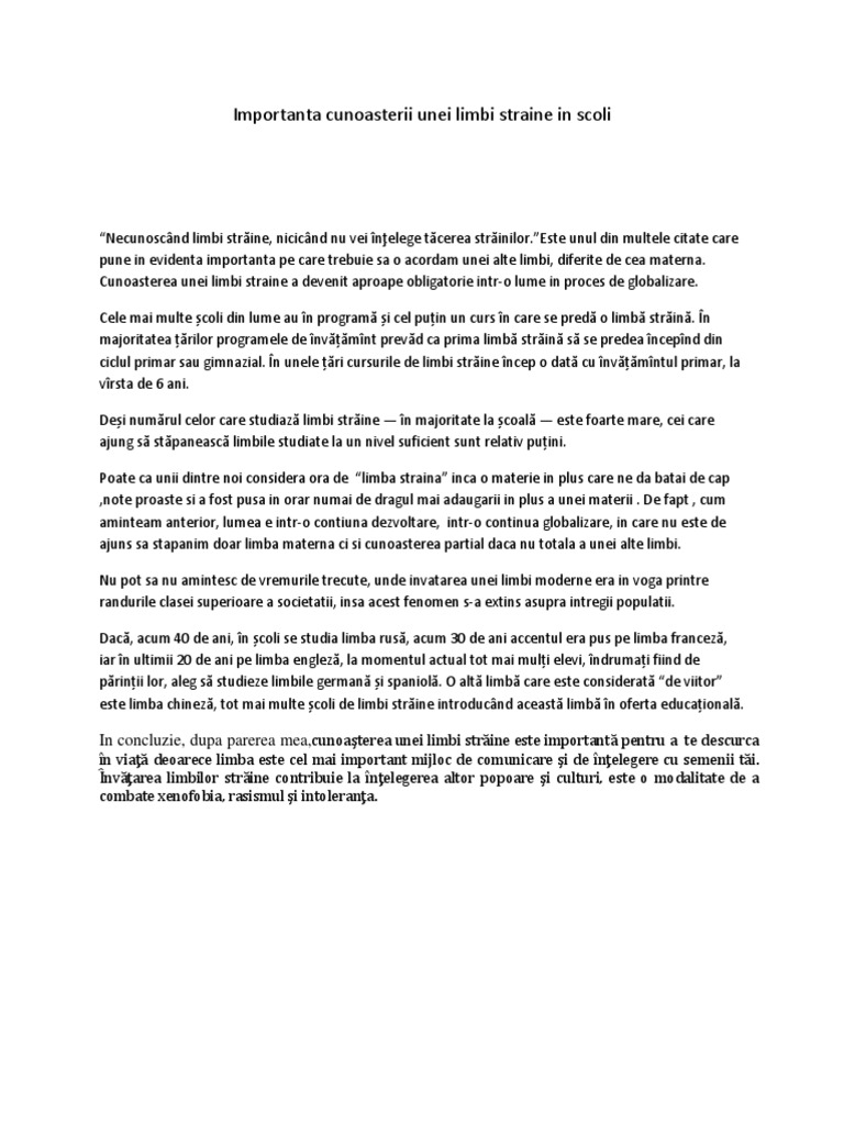 untuk "Importanta Invatarii Unei Limbi Straine Compunere"