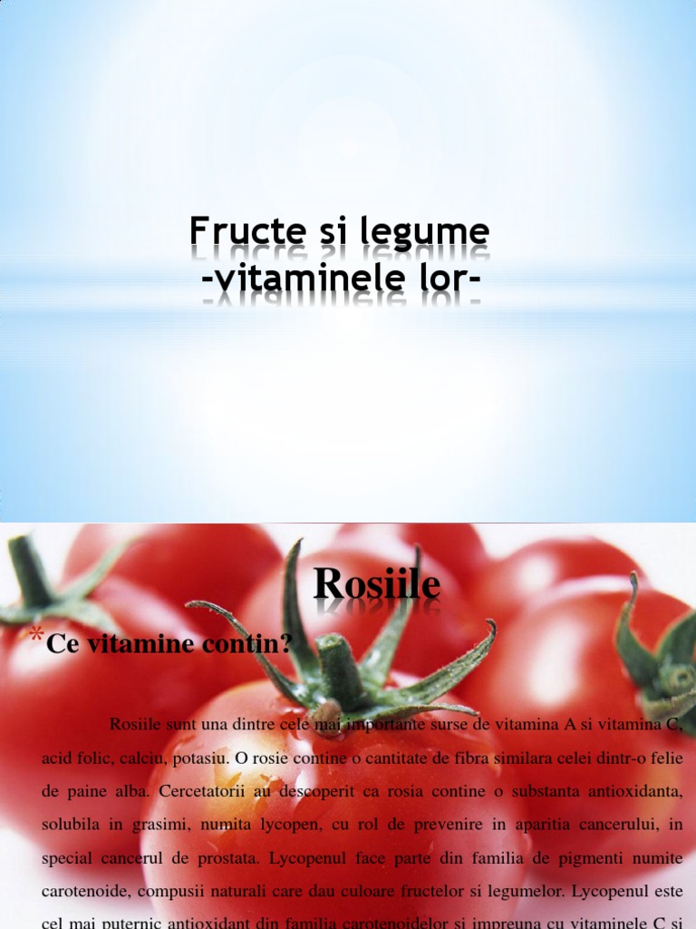 Rosia, leguma, substante hranitoare in fruct, cultivarea rosiilor, prevenirea daunatorilor, recoltare si depozitare. Eu stiam ca e leguma dar in manualul de biologie scrie ca e fruct deci e leguma sau fruct. În anul 1893 curtea supremă a statelor unite ale americii în mod unanim a decis că la colectarea taxelor vamale roșiile trebuie considerate #legume, deși curtea a trecut în revistă faptul că din punct de vedere botanic, roșiile sunt fructe. Roșia este un fruct подробнее. Indiferent daca este vorba despre un fruct sau o leguma, rosia este, fara doar si poate, un aliment extrem de valoros.