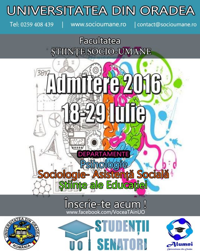 Admitere 2019 admitere 2018 admitere 2017 admitere 2016 admitere 2015 admitere 2014 . Facultatea de ştiinţe ale educaţiei, psihologie şi asistenţă socială. Relatii internationale si studii europene; Rezultatele concursului de admitere pentru românii de pretutindeni | sesiunea iulie 2020. >>au fost publicate rezultatele admiterii pentru studiile de master sesiunea ii. Psihopedagogia educatiei timpurii si a scolaritatii mici . Universitatea "nicolae titulescu" din bucureşti . Didactice din invatamantul preuniversitar in universitatea din bucuresti. Subiecte din anii precedenti la admiterea in facultatea de politie si facultatea. Începutul învățământului universitar de psihologie la iași datează anterior înființării universității „alexandru ioan cuza" din iași . Administraţia naţională a penitenciarelor, prin unităţile subordonate, recrutează candidaţi în vederea participării la concursul de admitere .